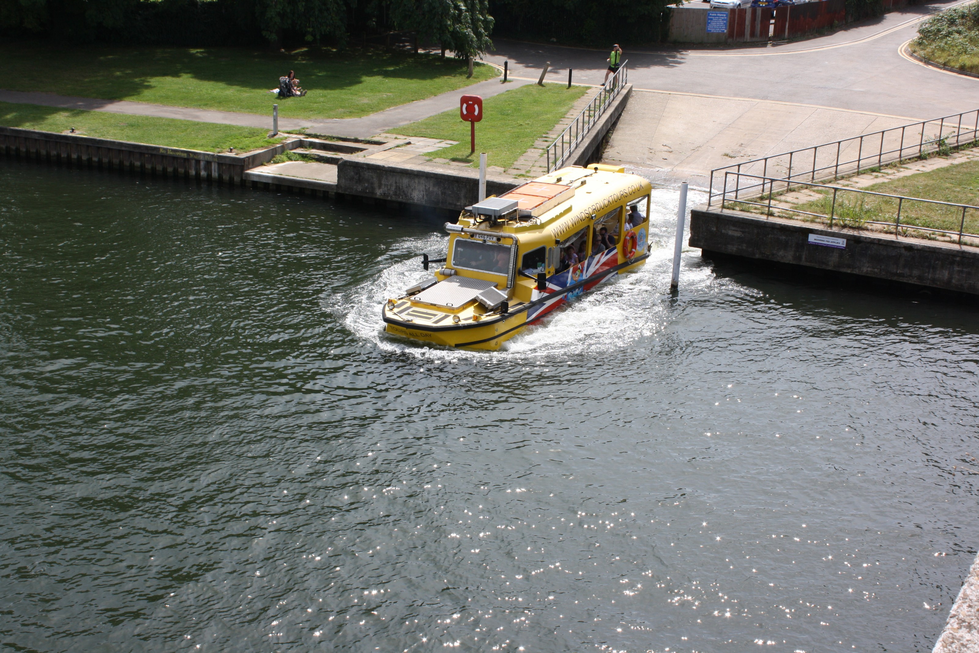 The Windsor Duck was built in 2010 for the sole purpose of carrying you, our lovely customers! As we are amphibious we must meet BOTH road and water regulation’s. To get slightly more technical, our Seahorse Amphibious MKII (used in Windsor) has multiple sealed foam filled buoyancy compartments and 3 other watertight compartments. Meaning if you were to flood the vehicle with water over the side, it will continue to float due to the 3 watertight compartments although we like to keep our feet dry so we are not planning to do any such thing.