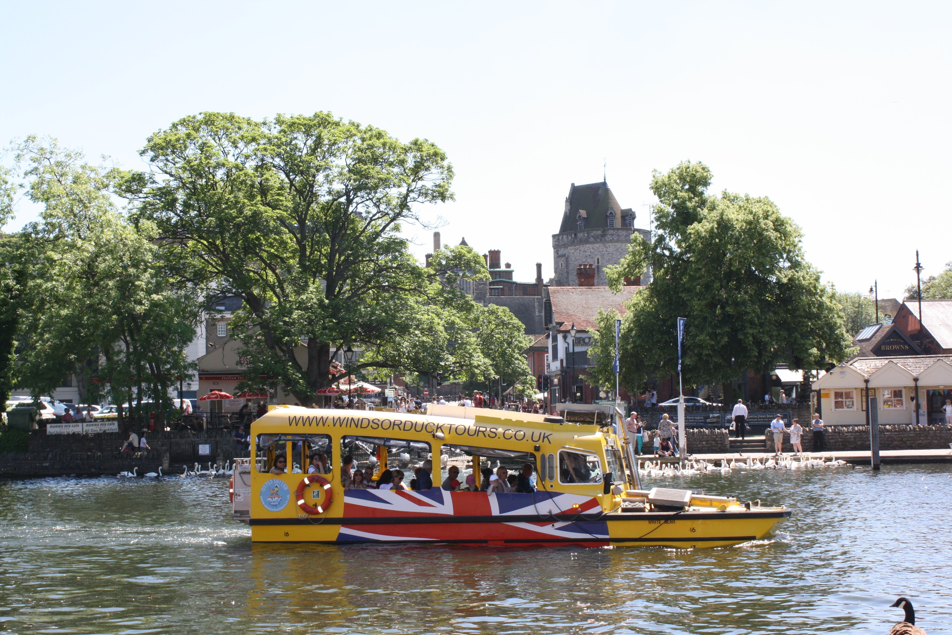 Our one-hour tour begins by road in the heart of Windsor, viewing many of Windsor’s most famous sights. We then venture down to our slipway, where we splashdown into the River Thames! With breathtaking views of the castle by river and many more famous sights to see, this is a fantastic section of the tour.